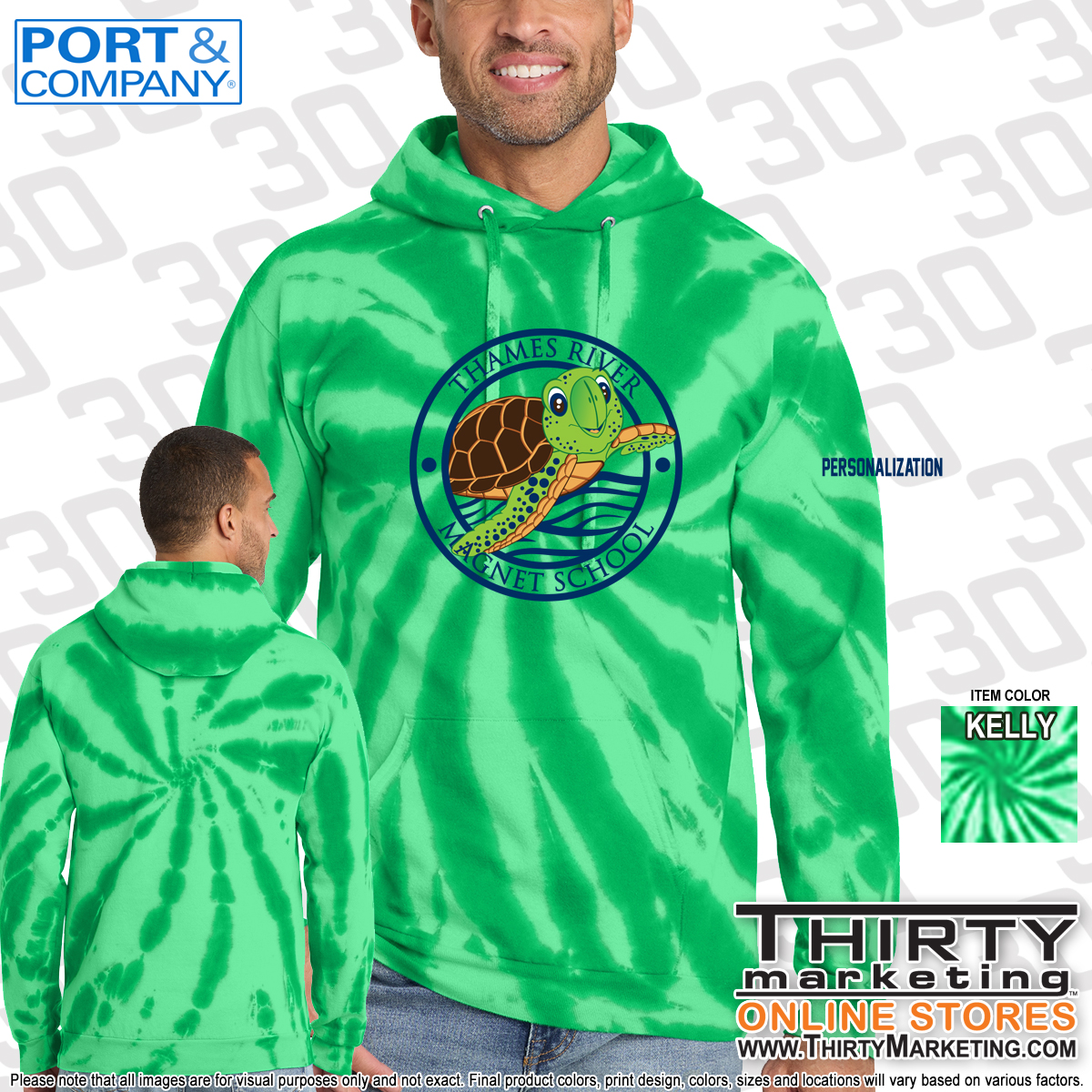 TRMS-26-PC146-Kelly Published March 2, 2026 at 1200 × 1200 in Thames River Magnet School Tie-Dye Hoodie