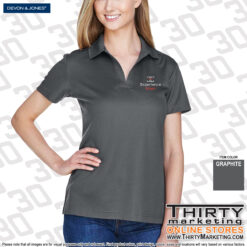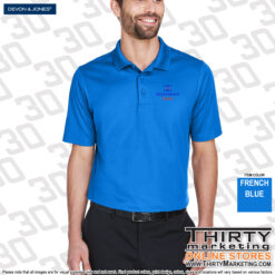- Proprietary dual-sided mesh pique knit constructed of fine denier wicking polyester on the outside and soft-as-cotton wicking blend on the inside