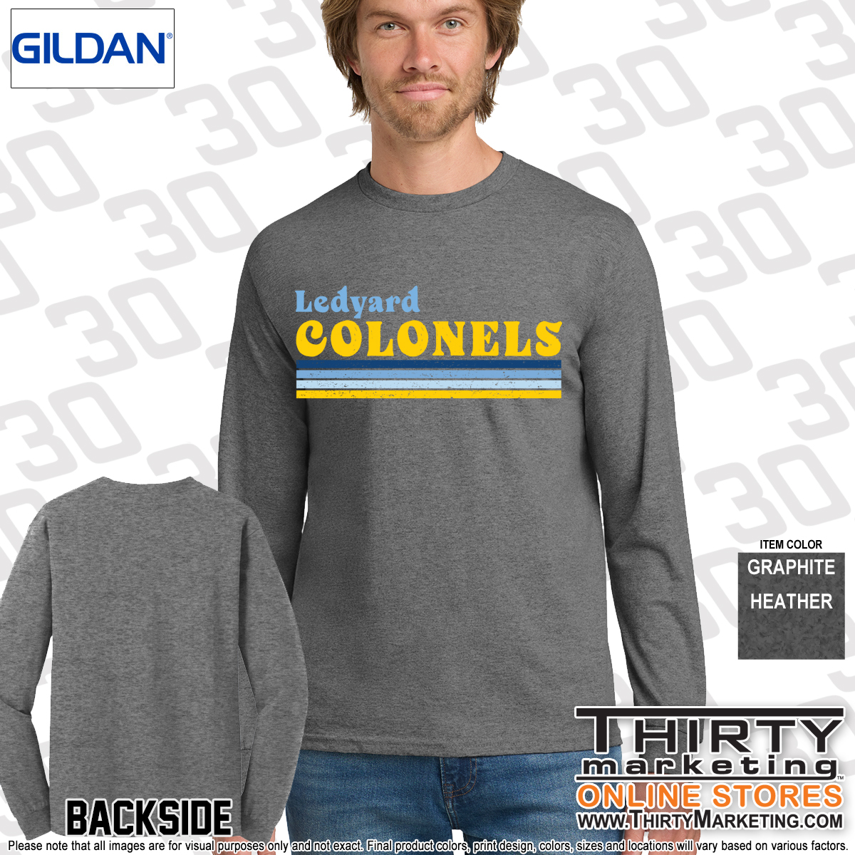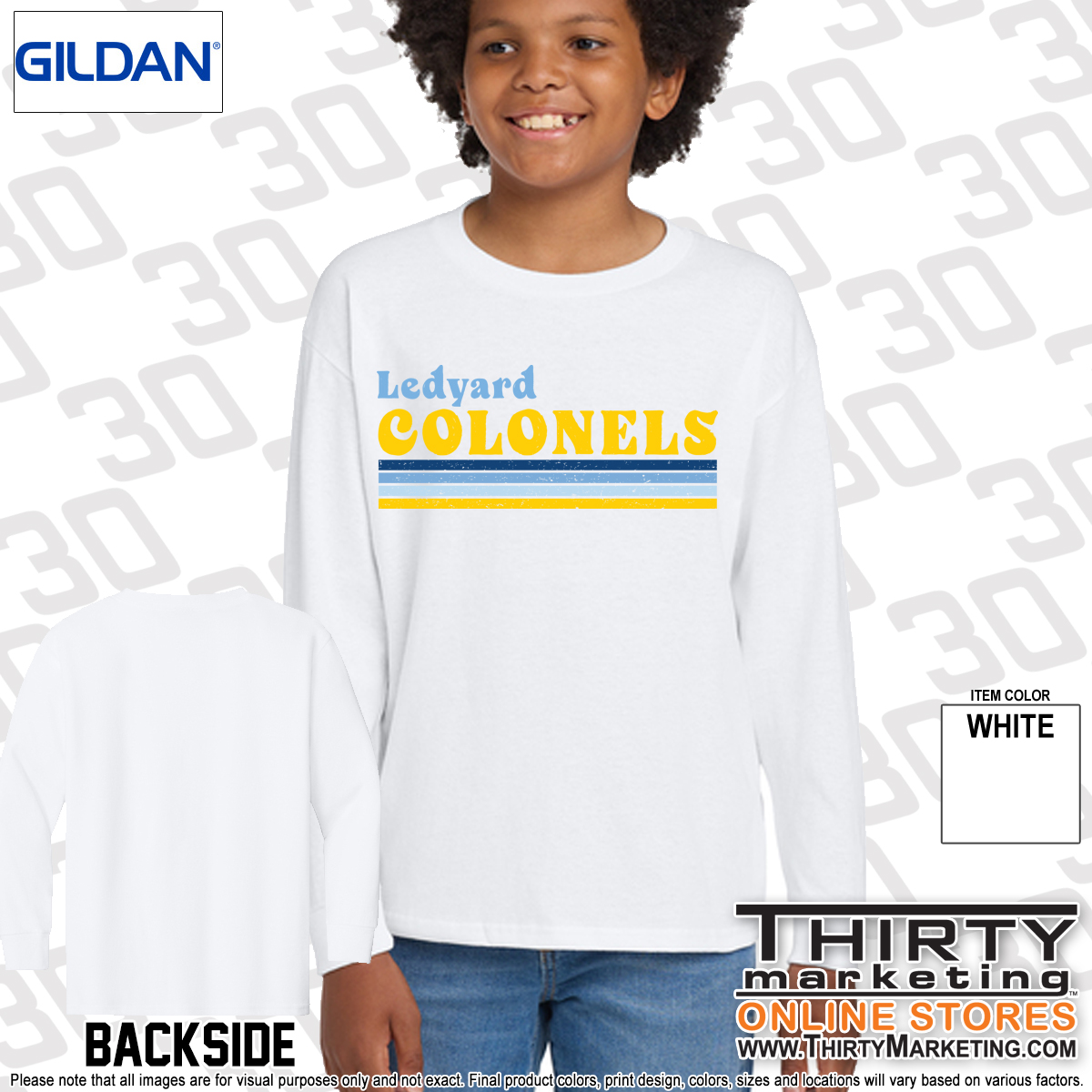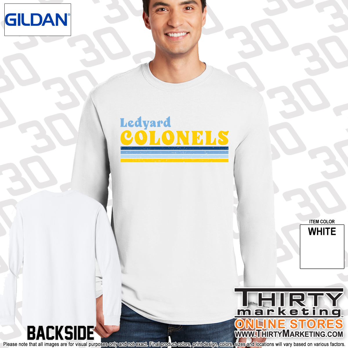 - Ledyard Colonels design on the front