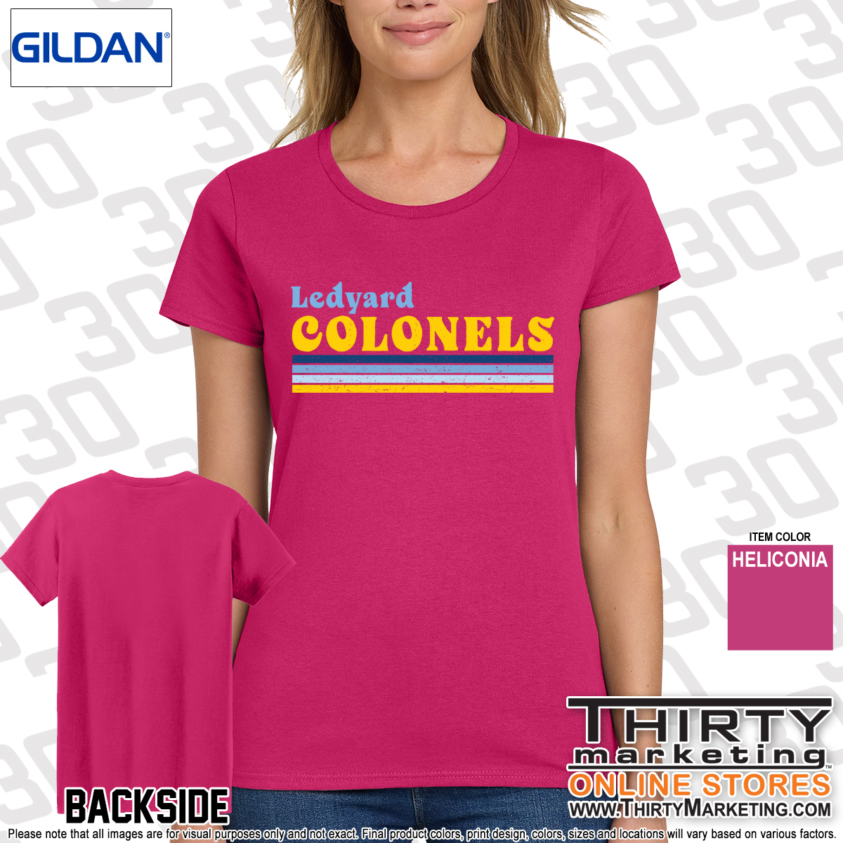 - Ledyard Colonels design on the front