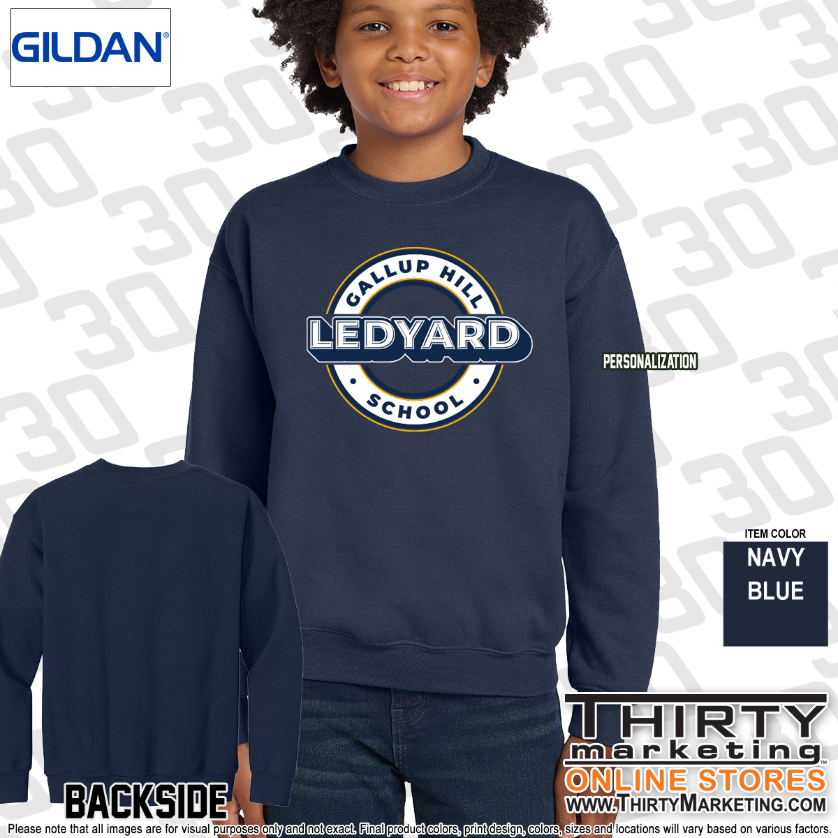 - Gallup Hill School Ledyard circle design screen printed on the front