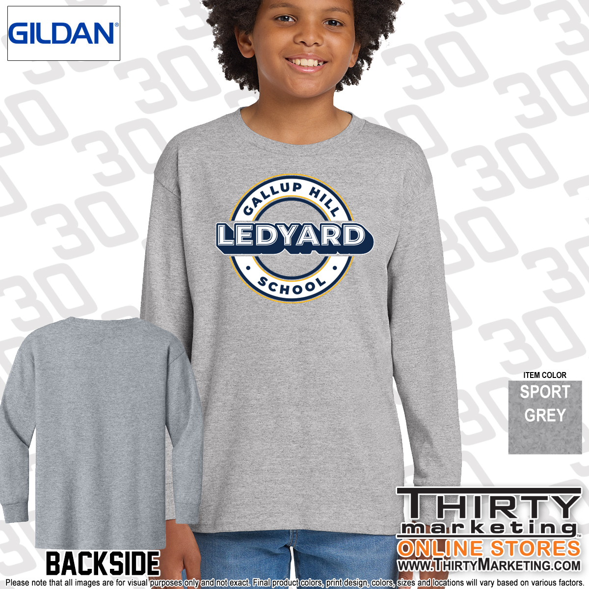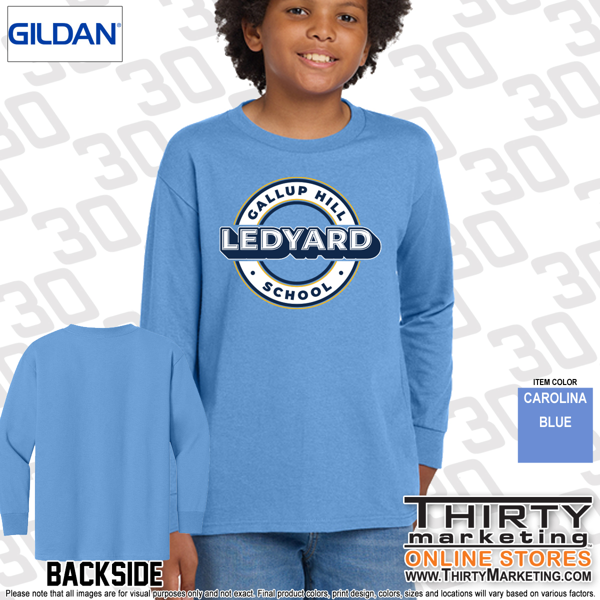 - Gallup Hill School Ledyard Circle design screen printed on the front