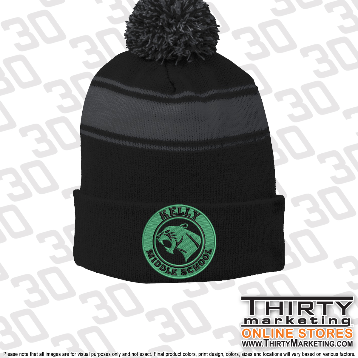Grab your Kelly Middle School Stripe Pom Pom Beanie here!!