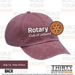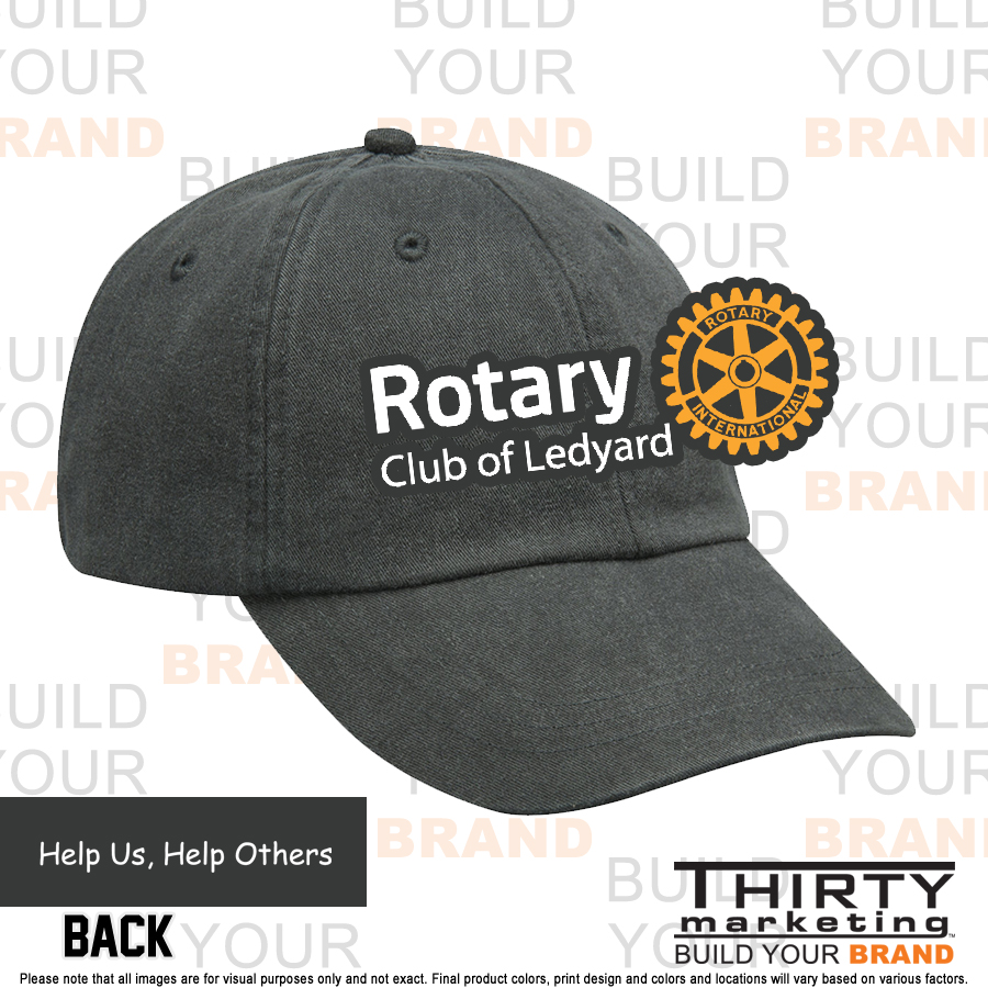 - Rotary Club of Ledyard Logo embroidered on the front with Help Us, Help others embroidered along the back