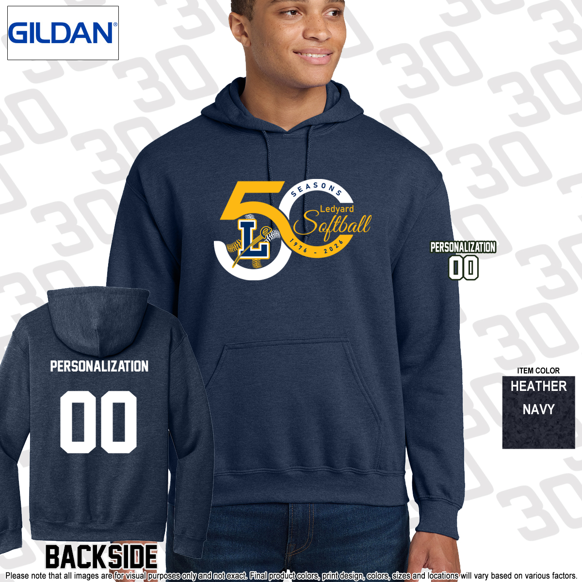 - LHS Softball 50 Seasons design screen printed on the front