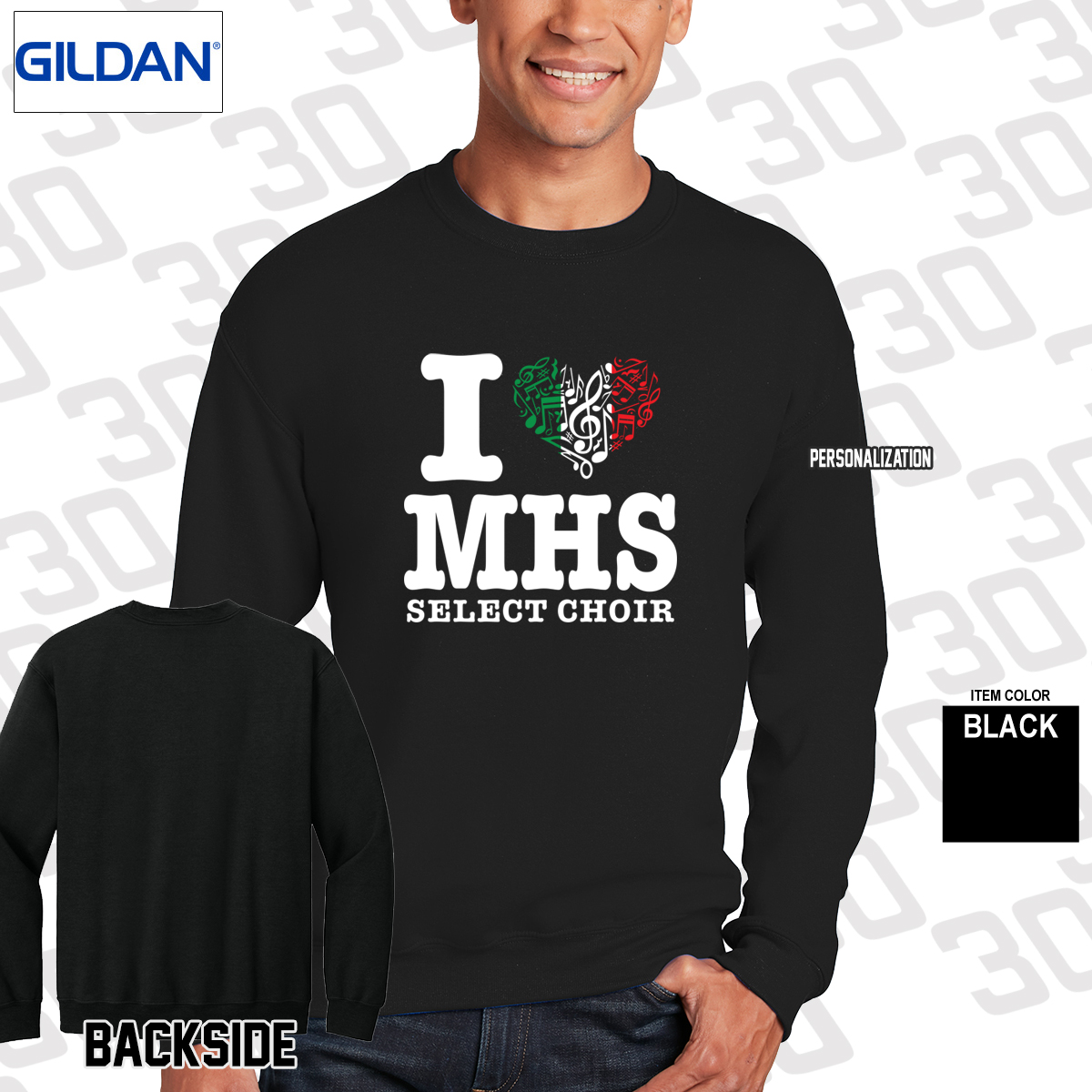 - Malverne Select Choir Italy design screen printed on the front