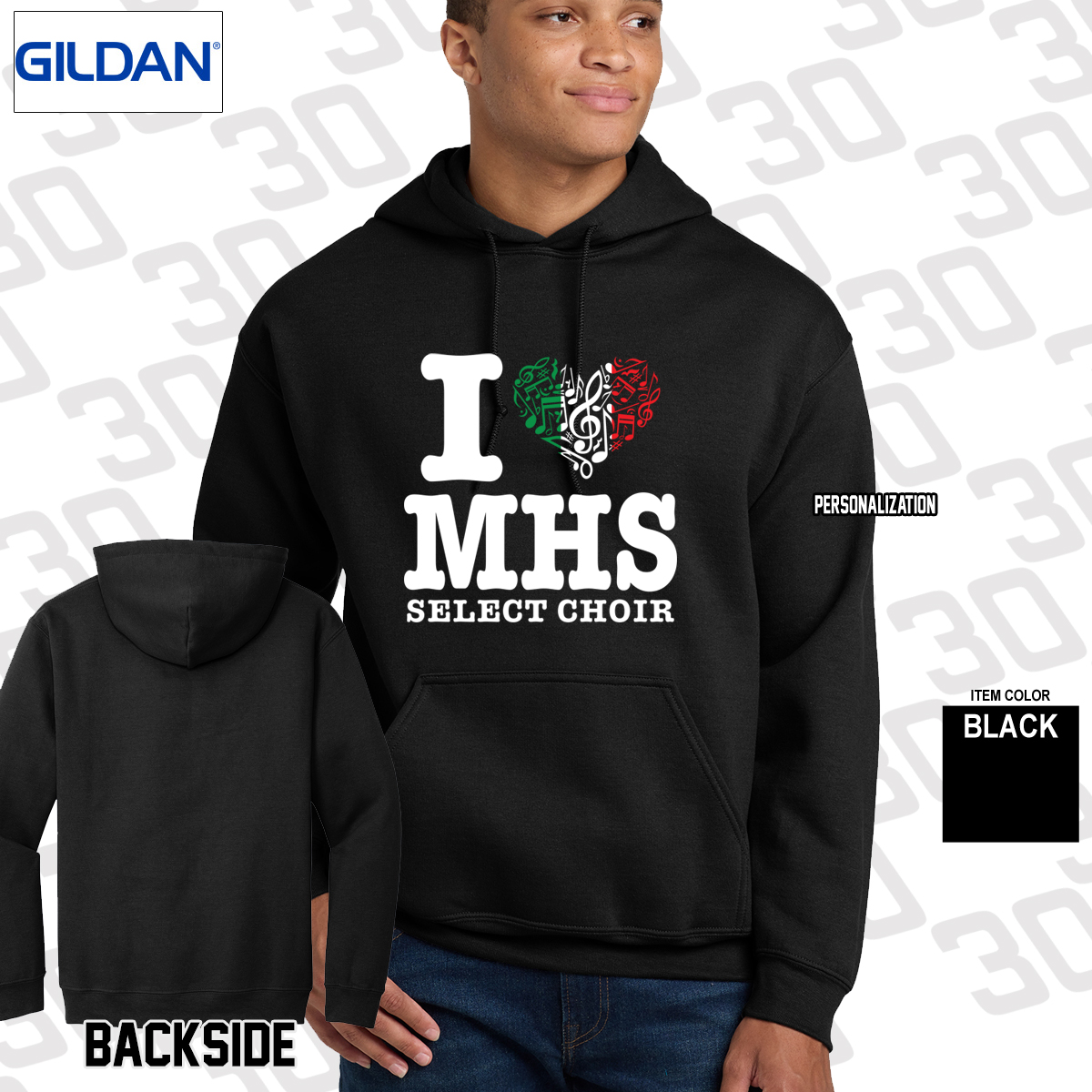 - Malverne Select Choir Italy design screen printed on the front