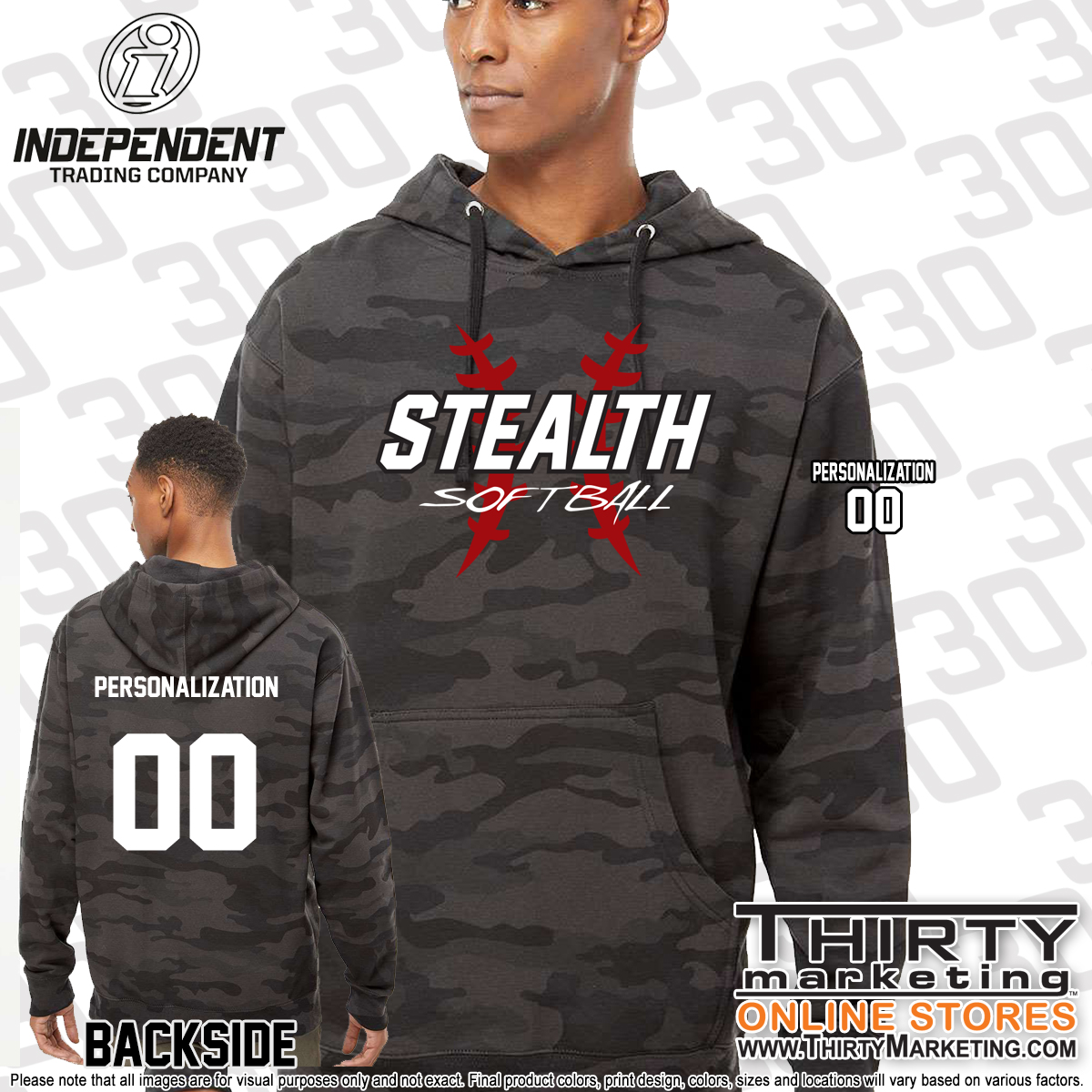 - Stealth Softball design screen printed on front