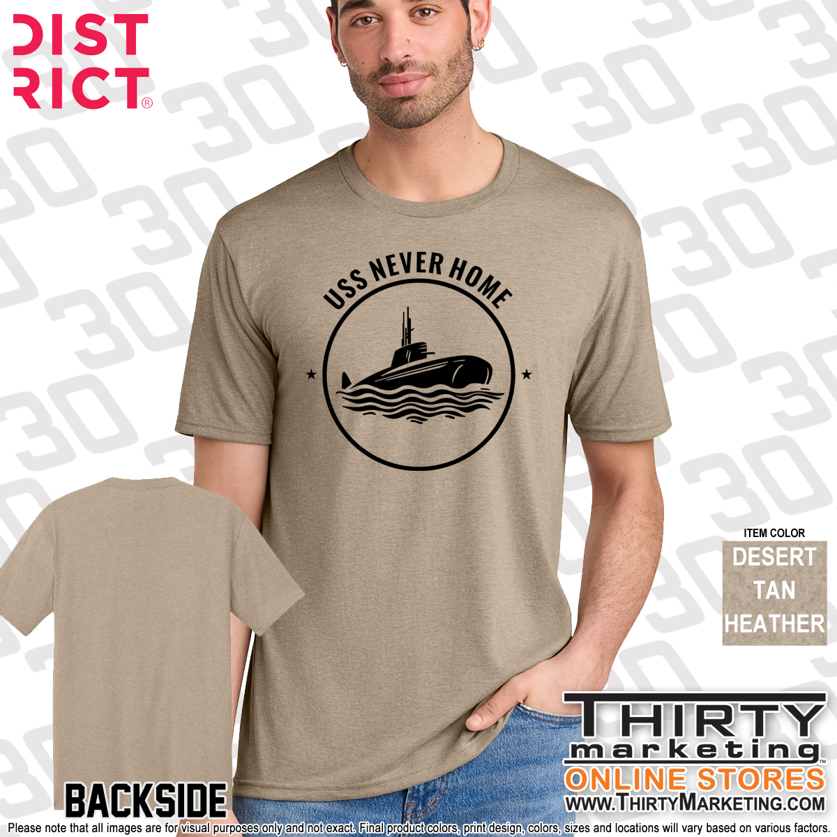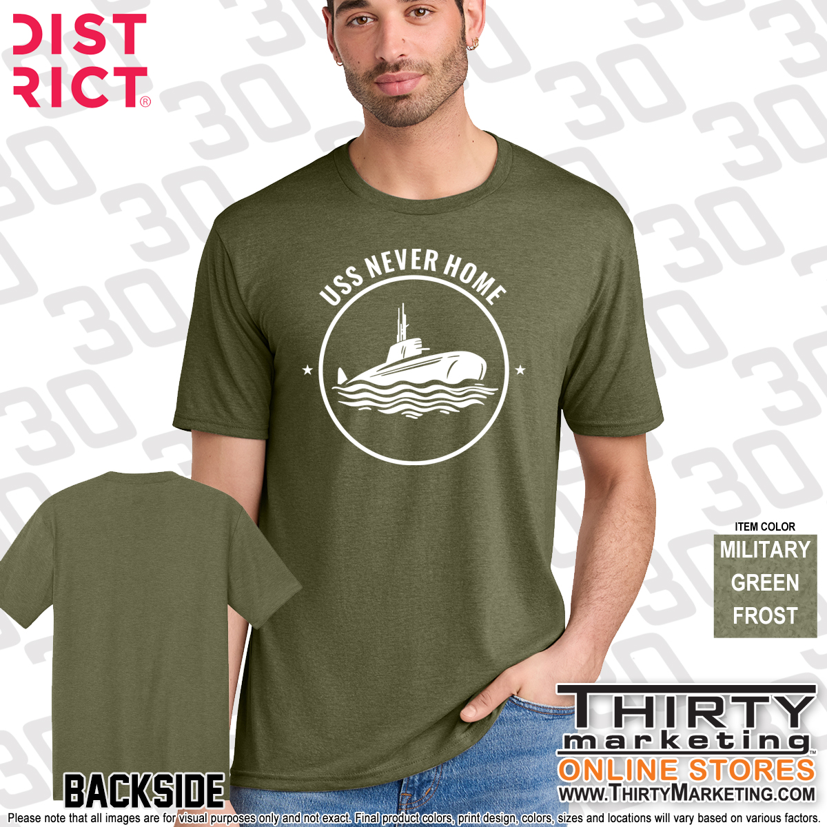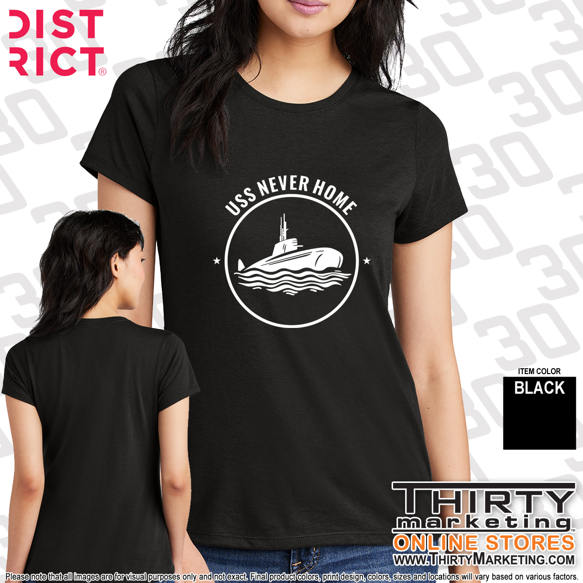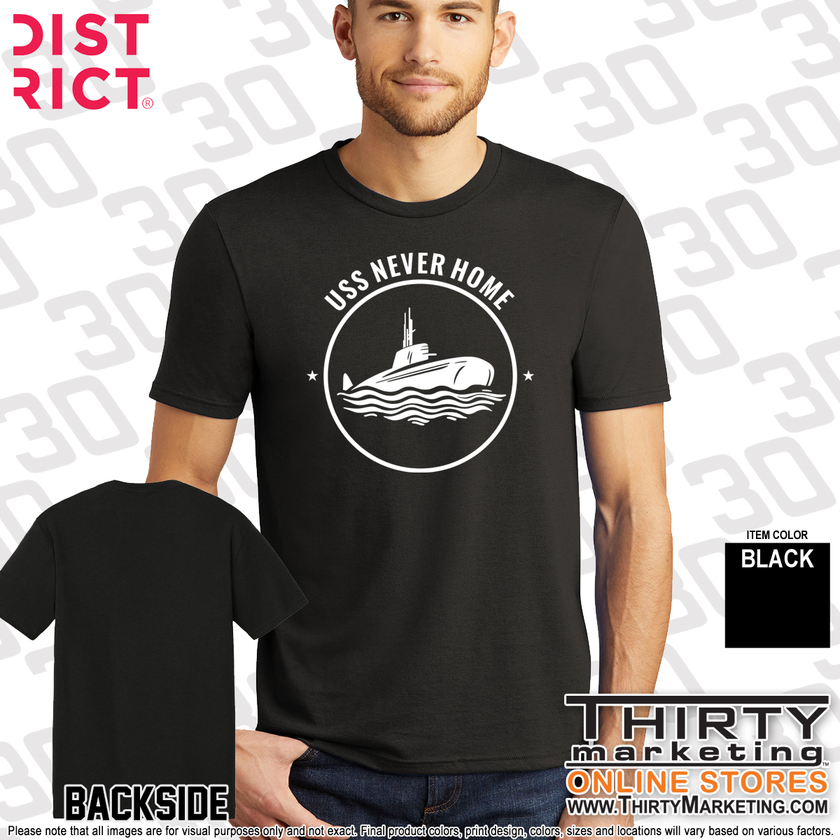 - USS Never Home design screen printed on the front