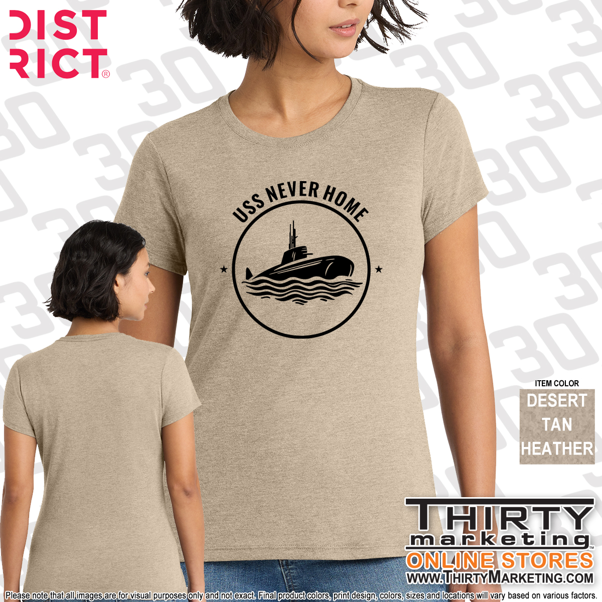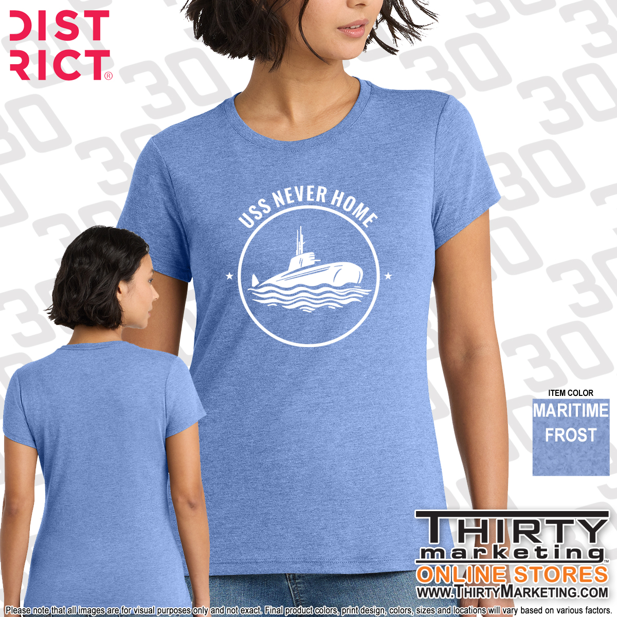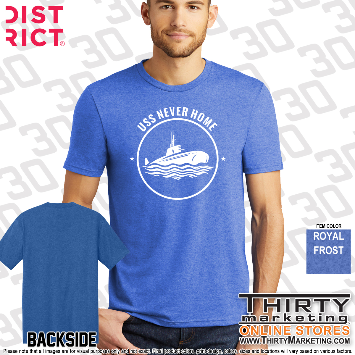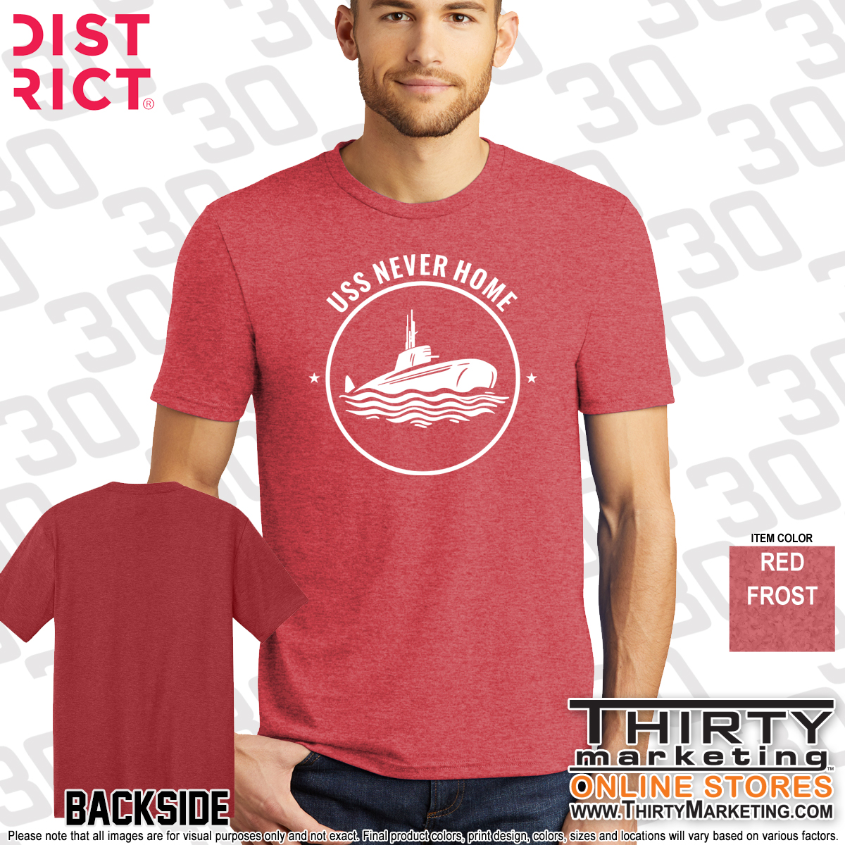- USS Never Home design screen printed on the front