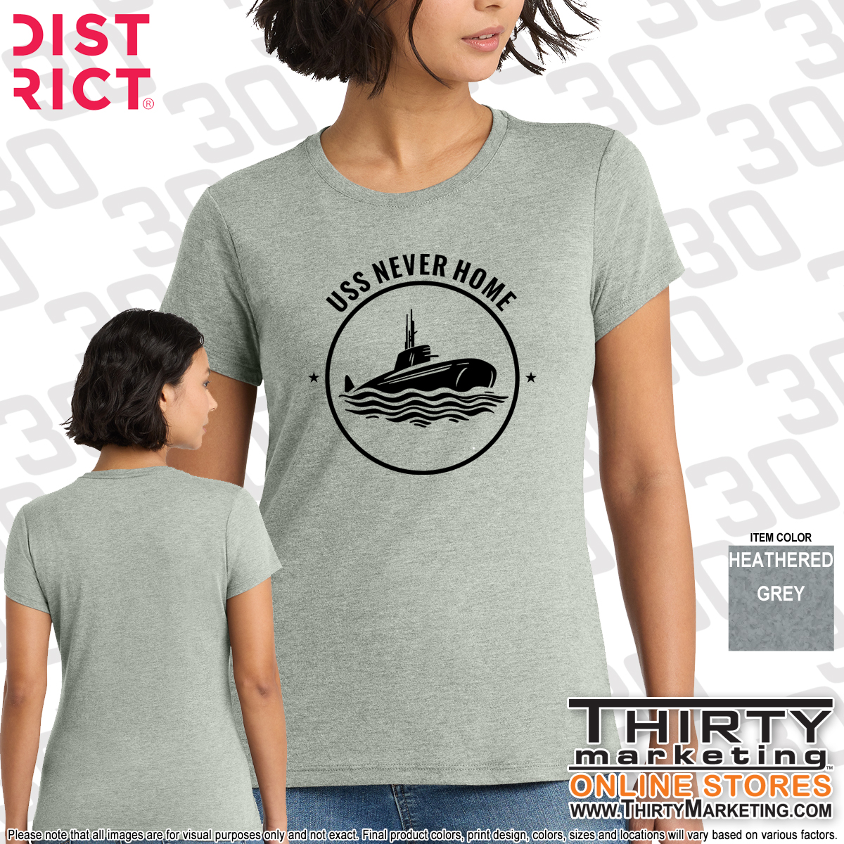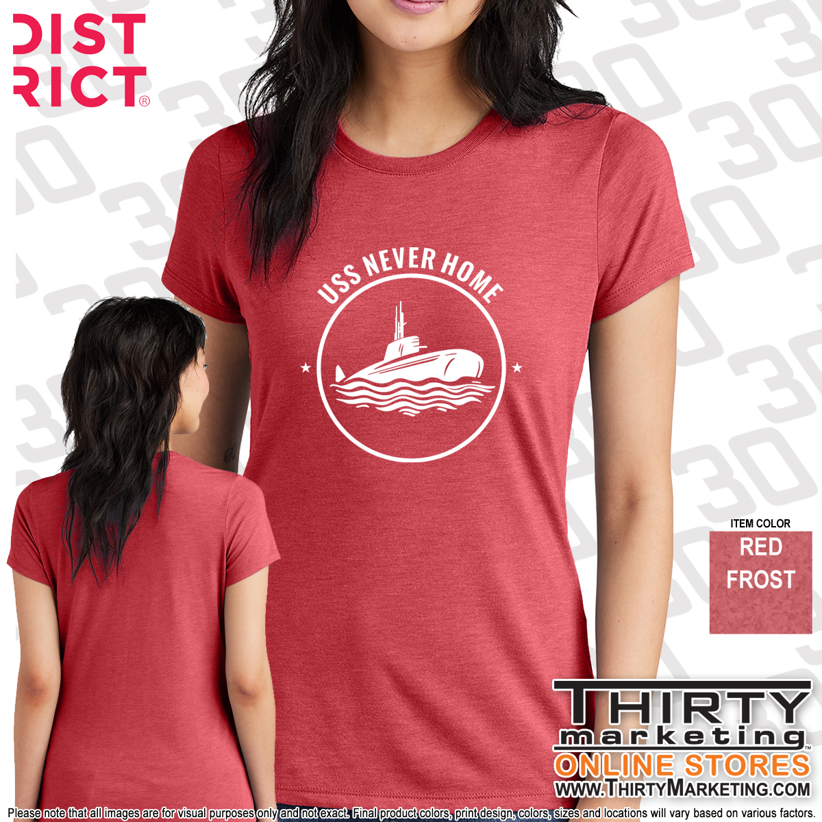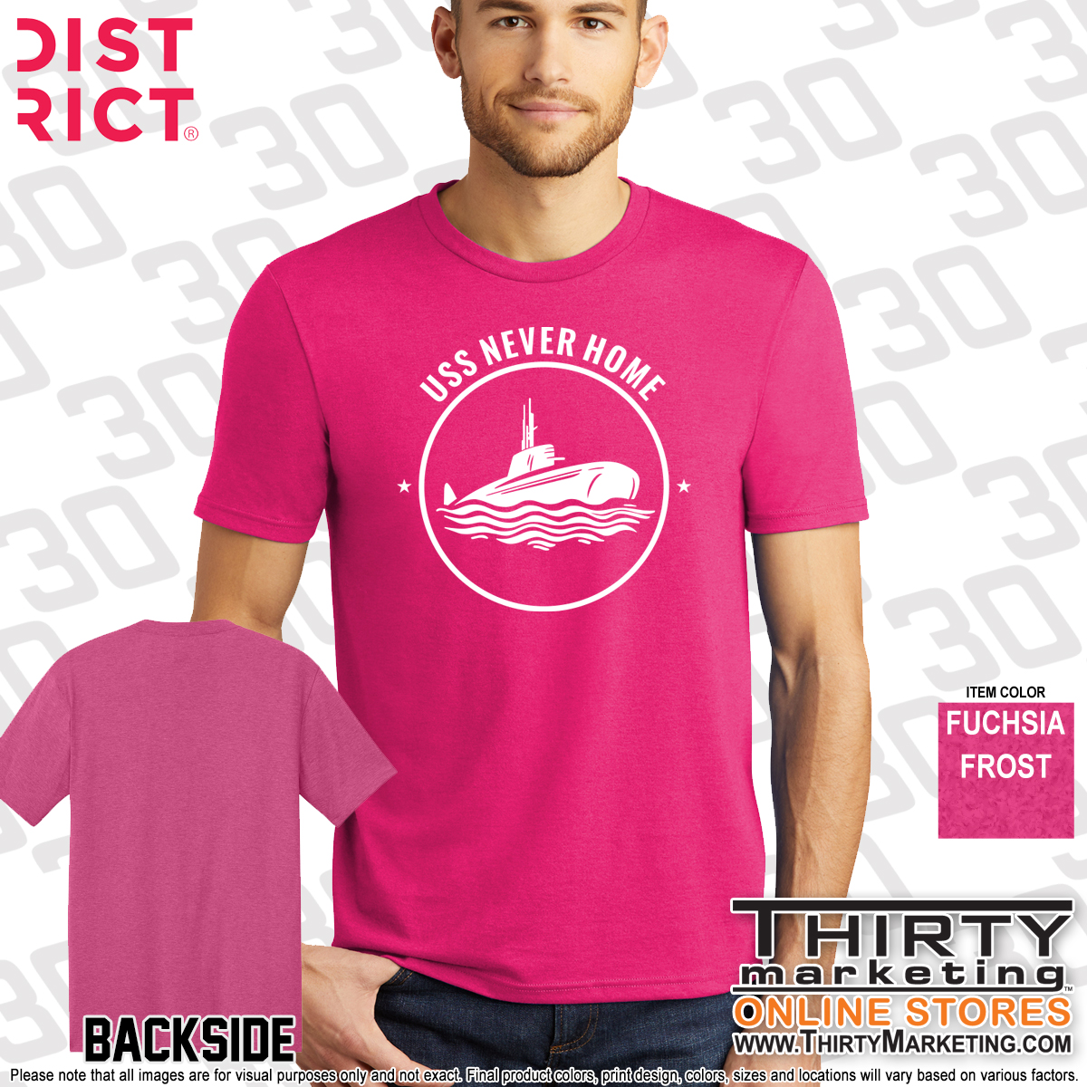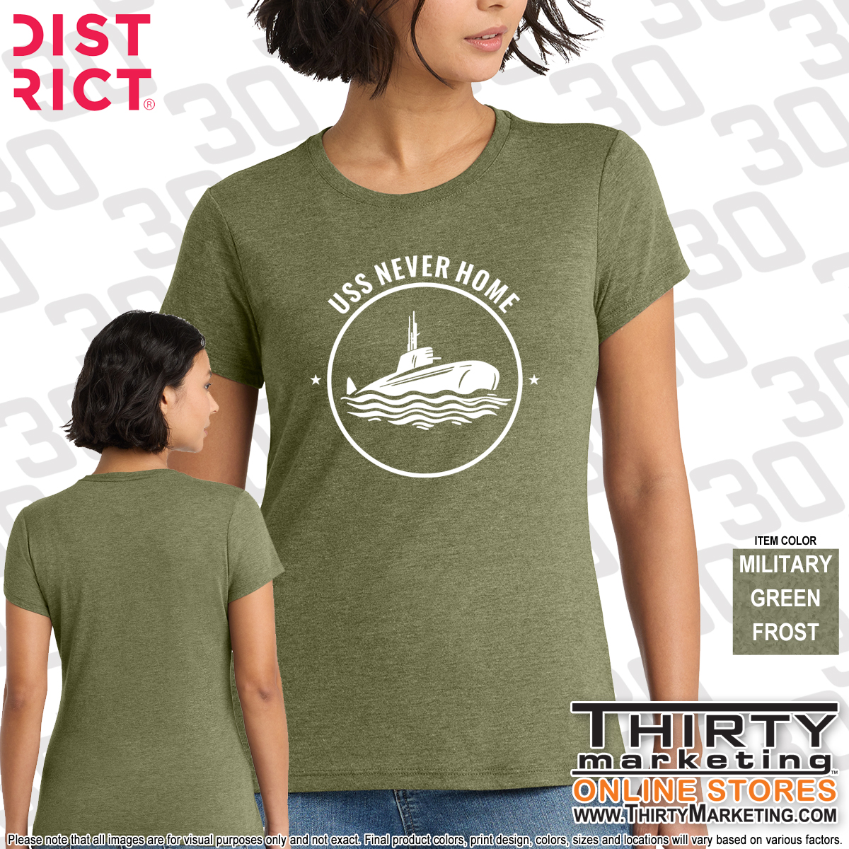 - USS Never Home design screen printed on the front